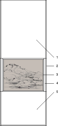 1. Upper piece 2. Border 3. Spacer 4. Side pieces 5. Lower piece